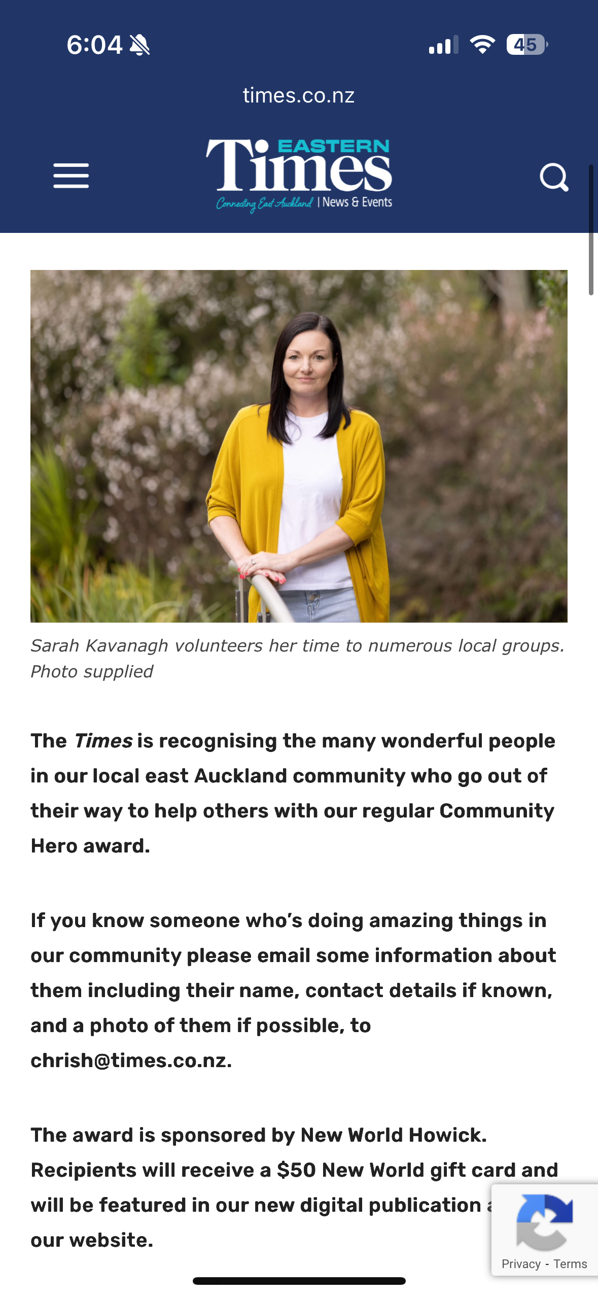 She was nominated by Raewyn, who writes: “Sarah is on the Shelly Park School board (and PTA), she helps manage two football teams for Bucklands Beach children, she’s been on gymnastics committees, playgroup committees, and everything that supports families within the area.